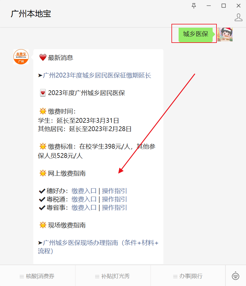 点击下方链接进入广州本地宝微信公众号,在公众号首页对话框回复【城乡医保】即可获取办理入口。