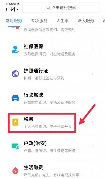 第二步:在页面中找到“税务”并点击;