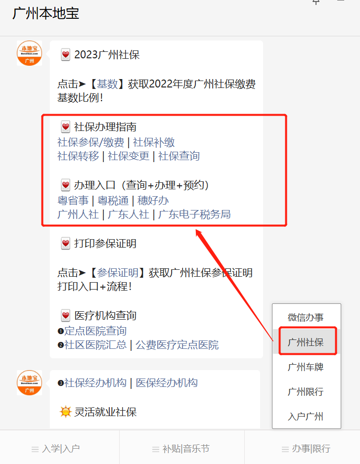 在公众号首页菜单栏点击【广州社保】