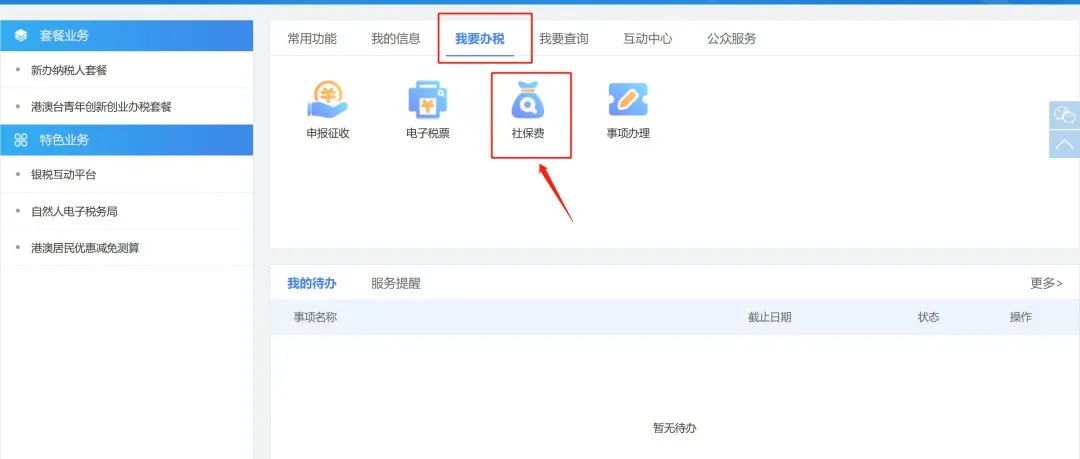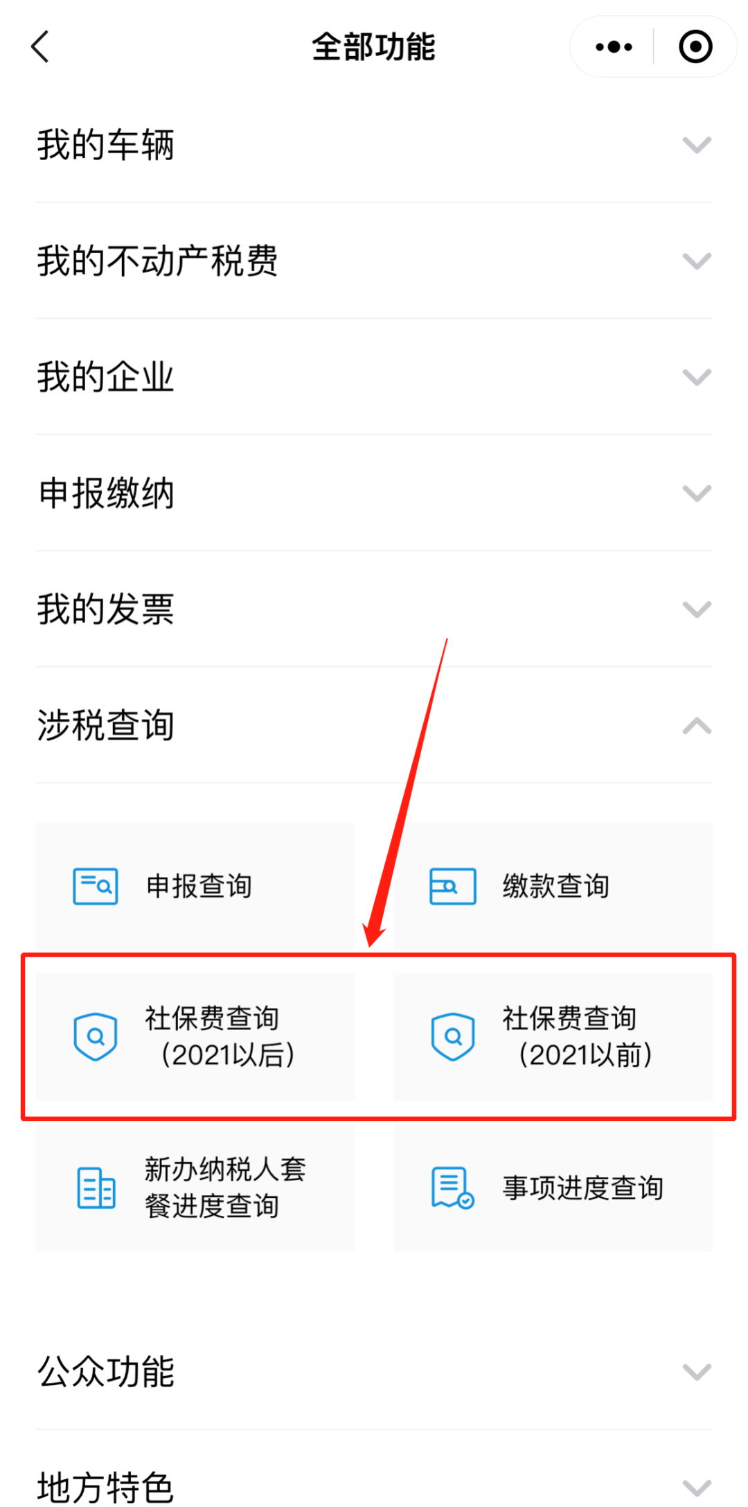 进入口首页点击【全部功能】-【涉税查询】-【社保费查询】