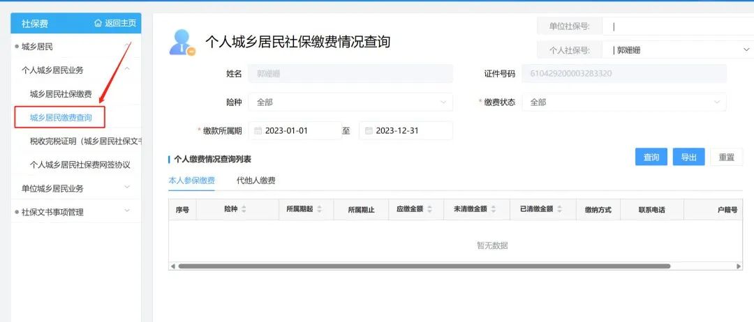 主页-热门服务,【税务】-【社会保险费】,点击查询