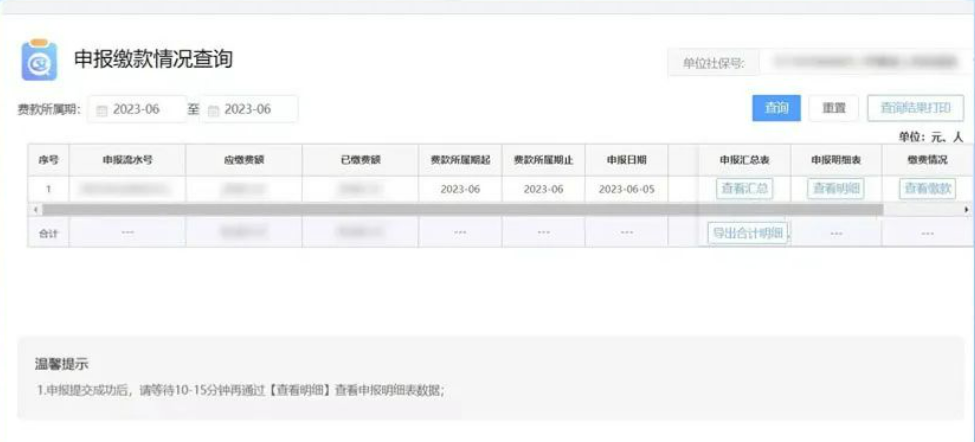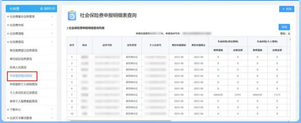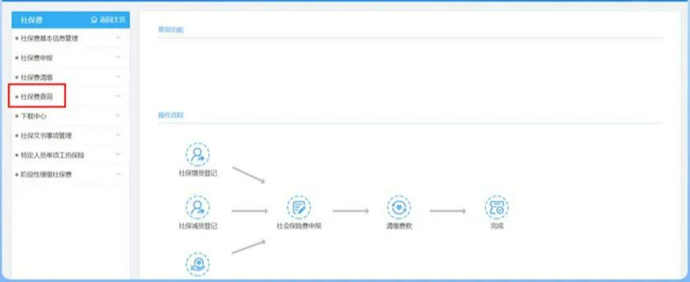 4、[社保费查询]->[申报缴款情况查询]”