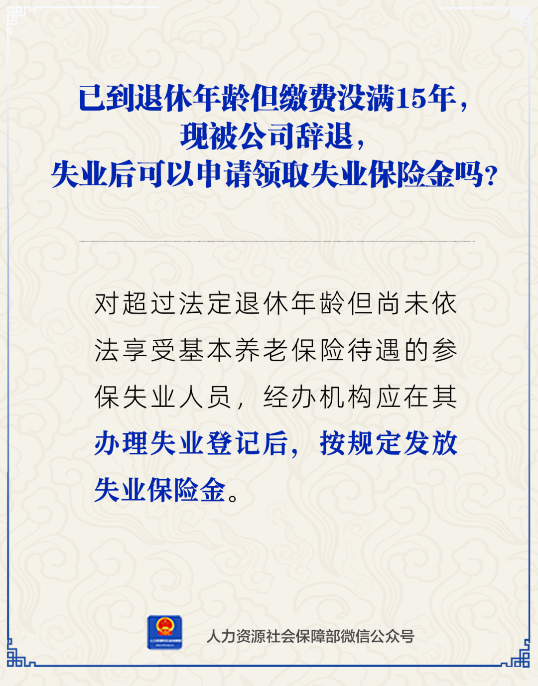 已到退休年龄但缴费未满15年,现被公司辞退,能申领失业保险金吗?