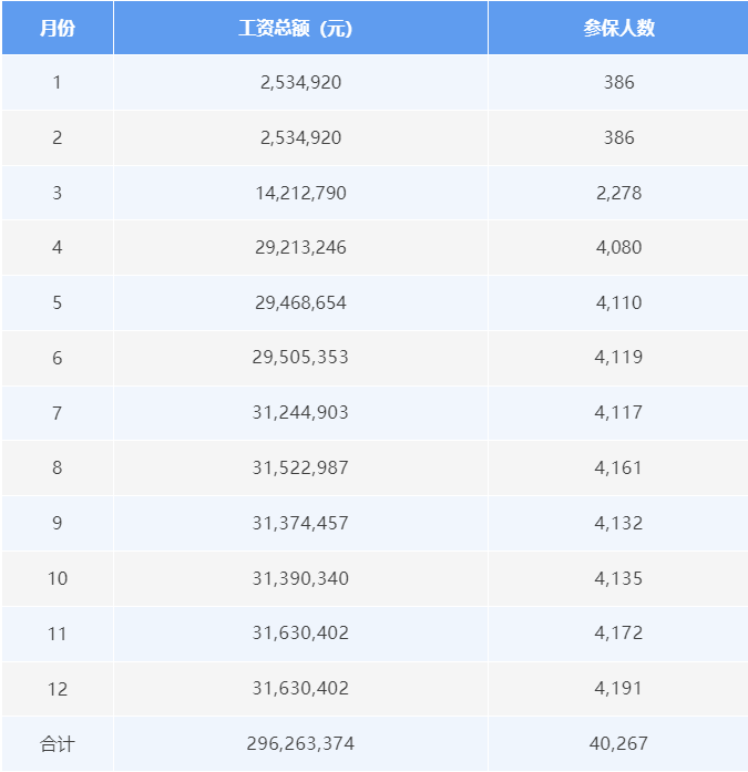 A女士在2024年生了宝宝,2023年1-12月她工作的公司每个月申报工资总额与参保人数总和如下: